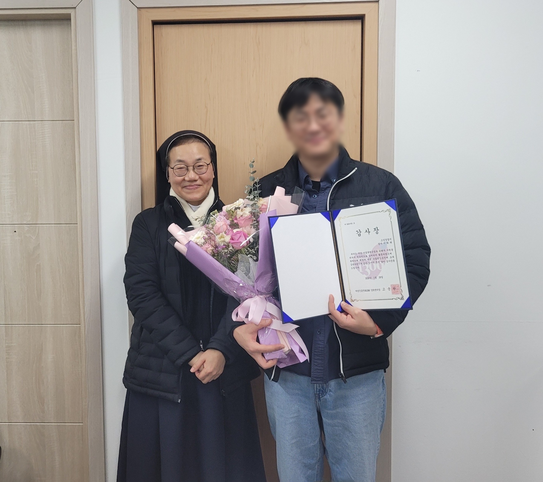 경장님에게 감사장을 수여함
