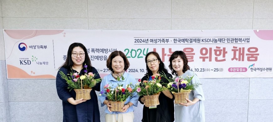 내용: 전국여성폭력예방시설 종사자들과 함께 편안하고 행복한 시간을 즐기며 평소 소진되었던 몸과 마음을 돌보는 소진예방교육에 참여함.